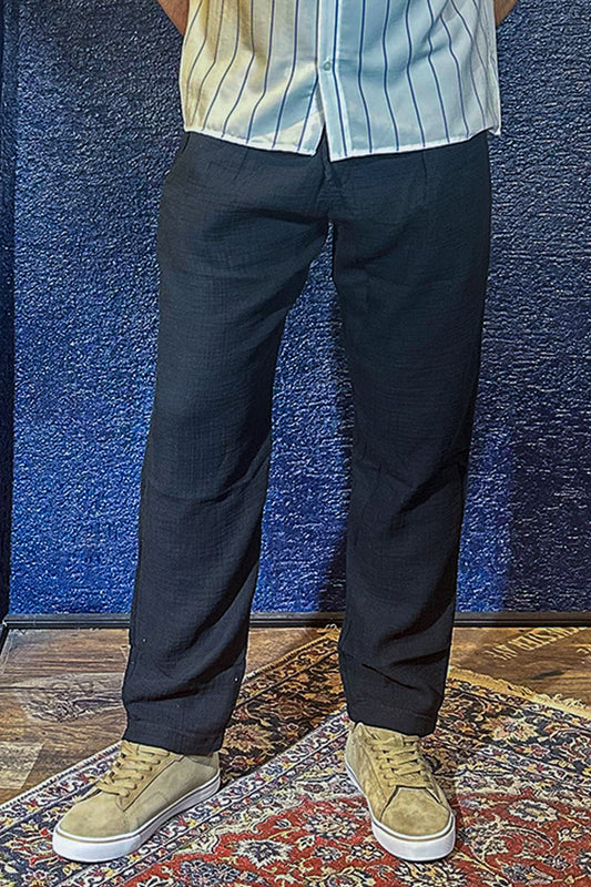 Beli Lastikli Erkek Baggy Keten Pantolon - Siyah