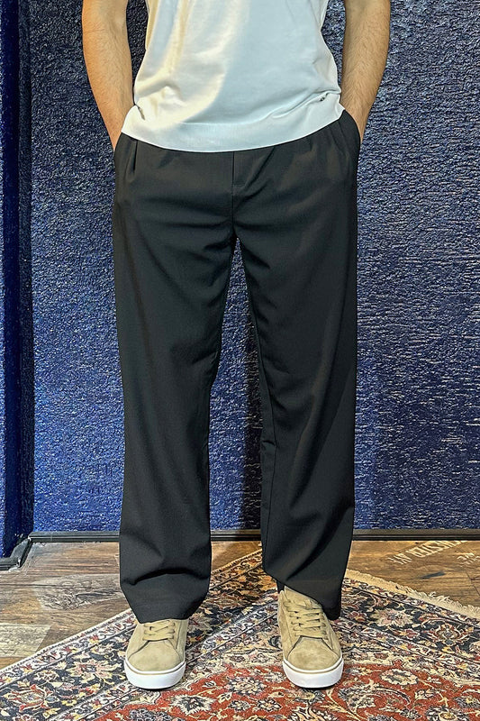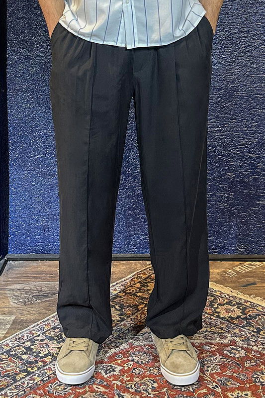 Önü Dikişli Bel Lastikli Pantolon Siyah