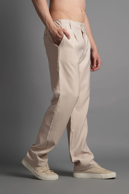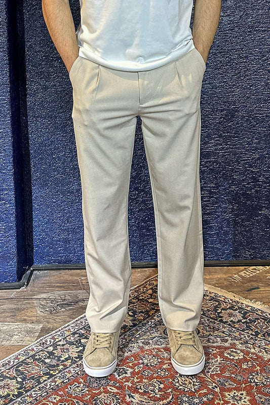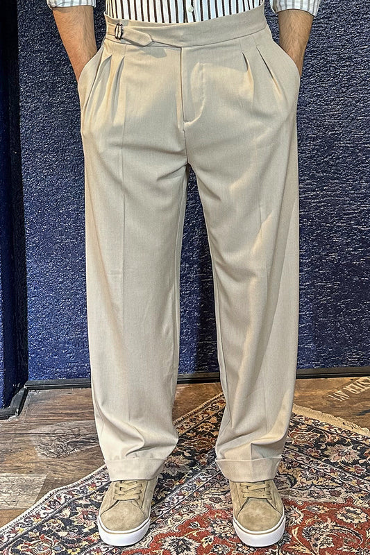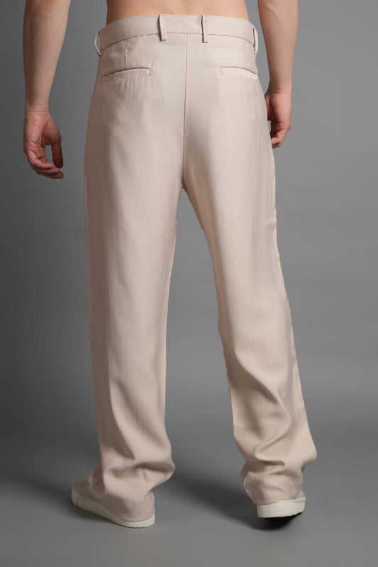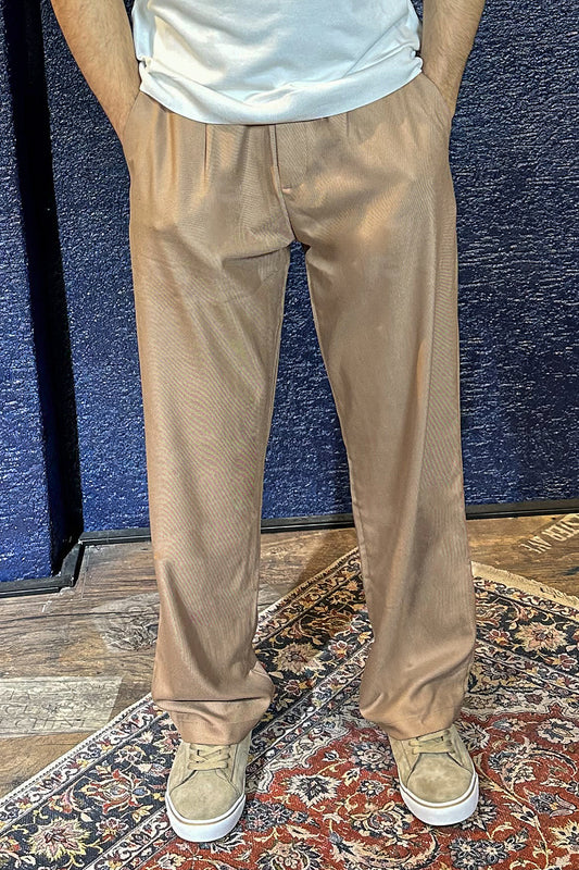 Erkek Old Money Baggy Kumaş Pantolon - Bej