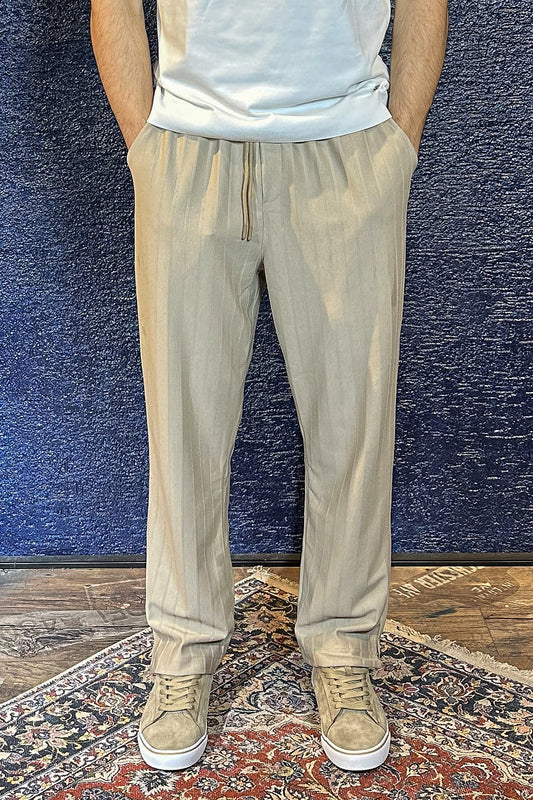 Çift Düğme Detaylı Çizgili Jogger Pantolon - Ekru