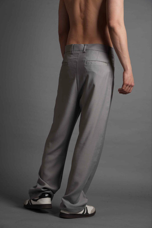 Erkek Old Money Baggy Kumaş Pantolon - Gri
