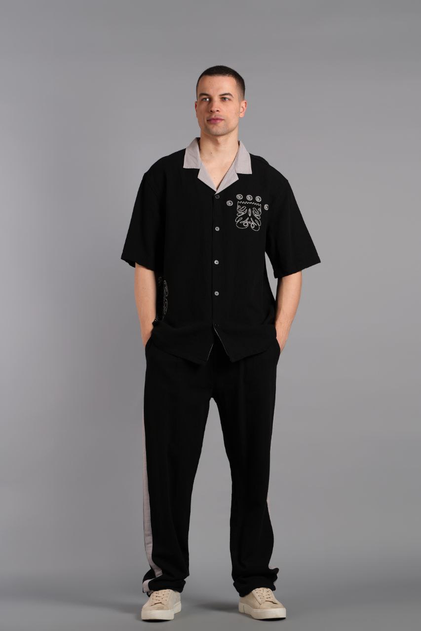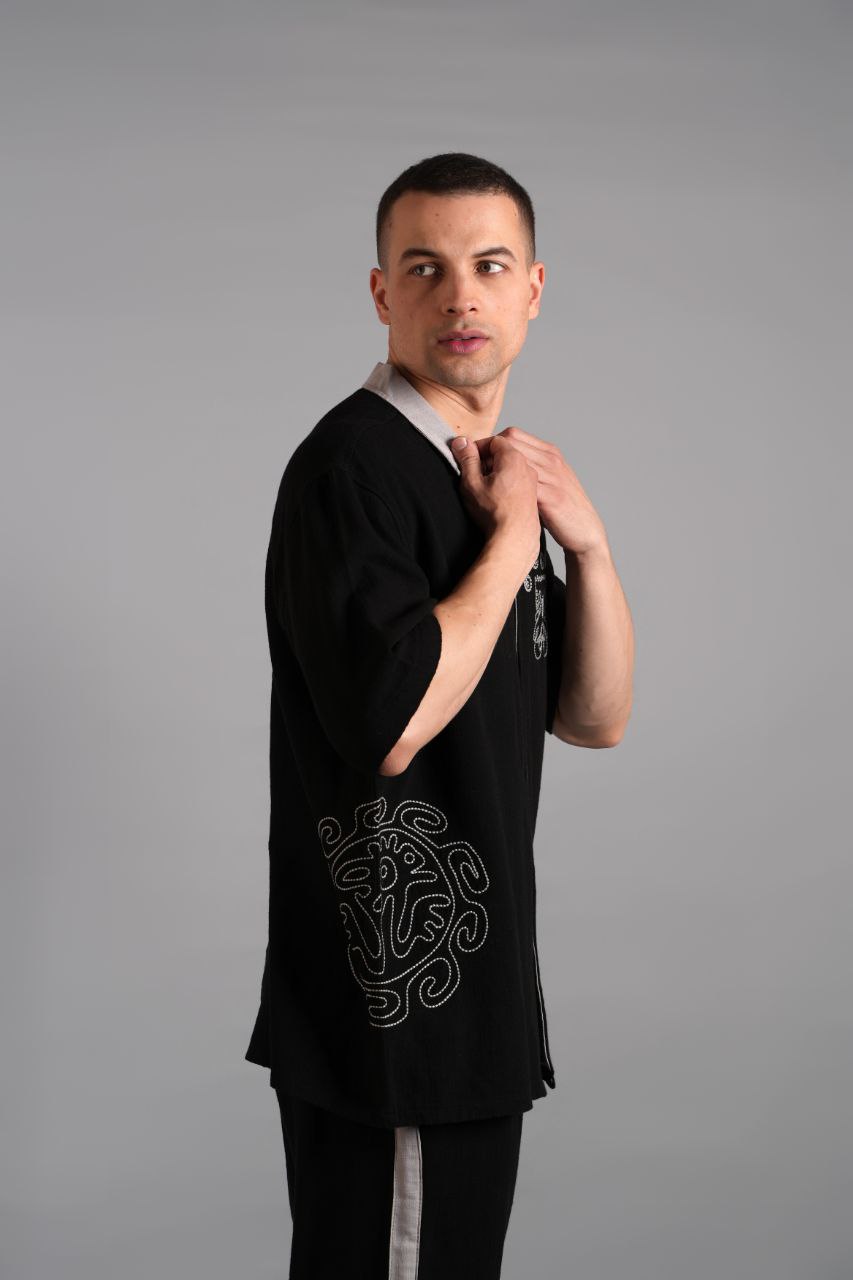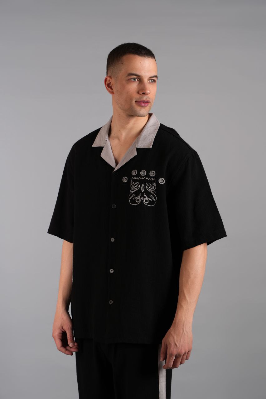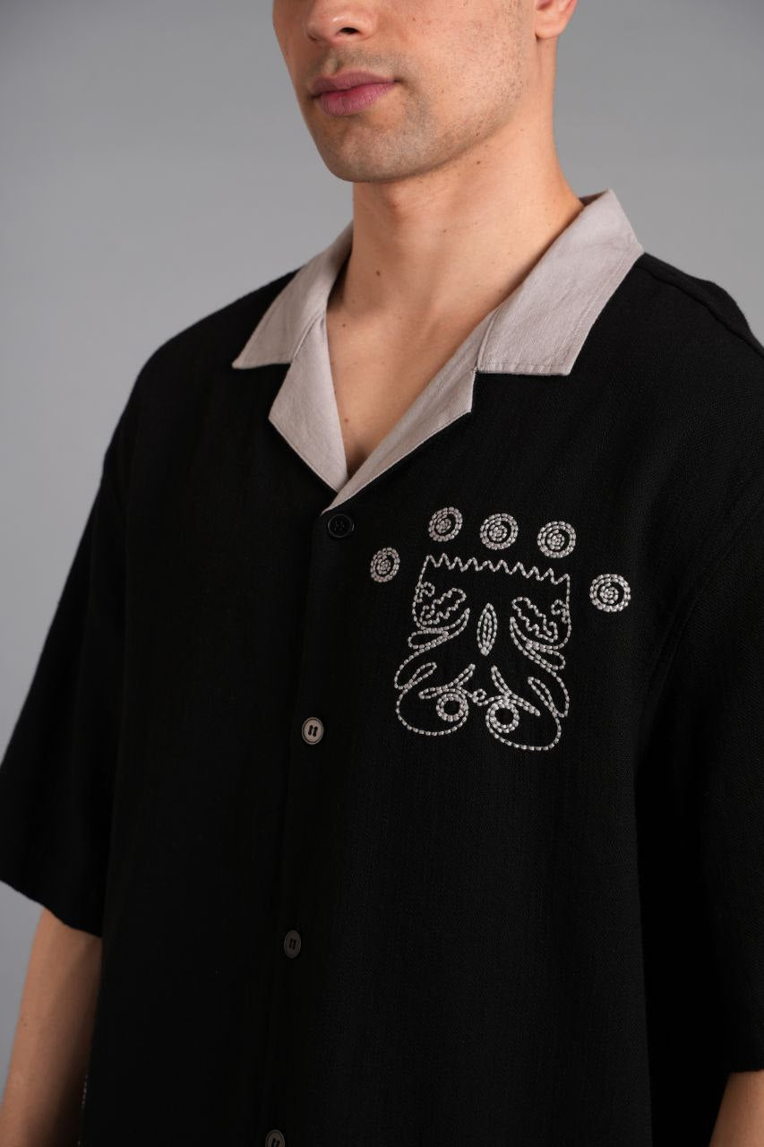 YAKA GARNİLİ NAKIŞLI GÖMLEK – SİYAH