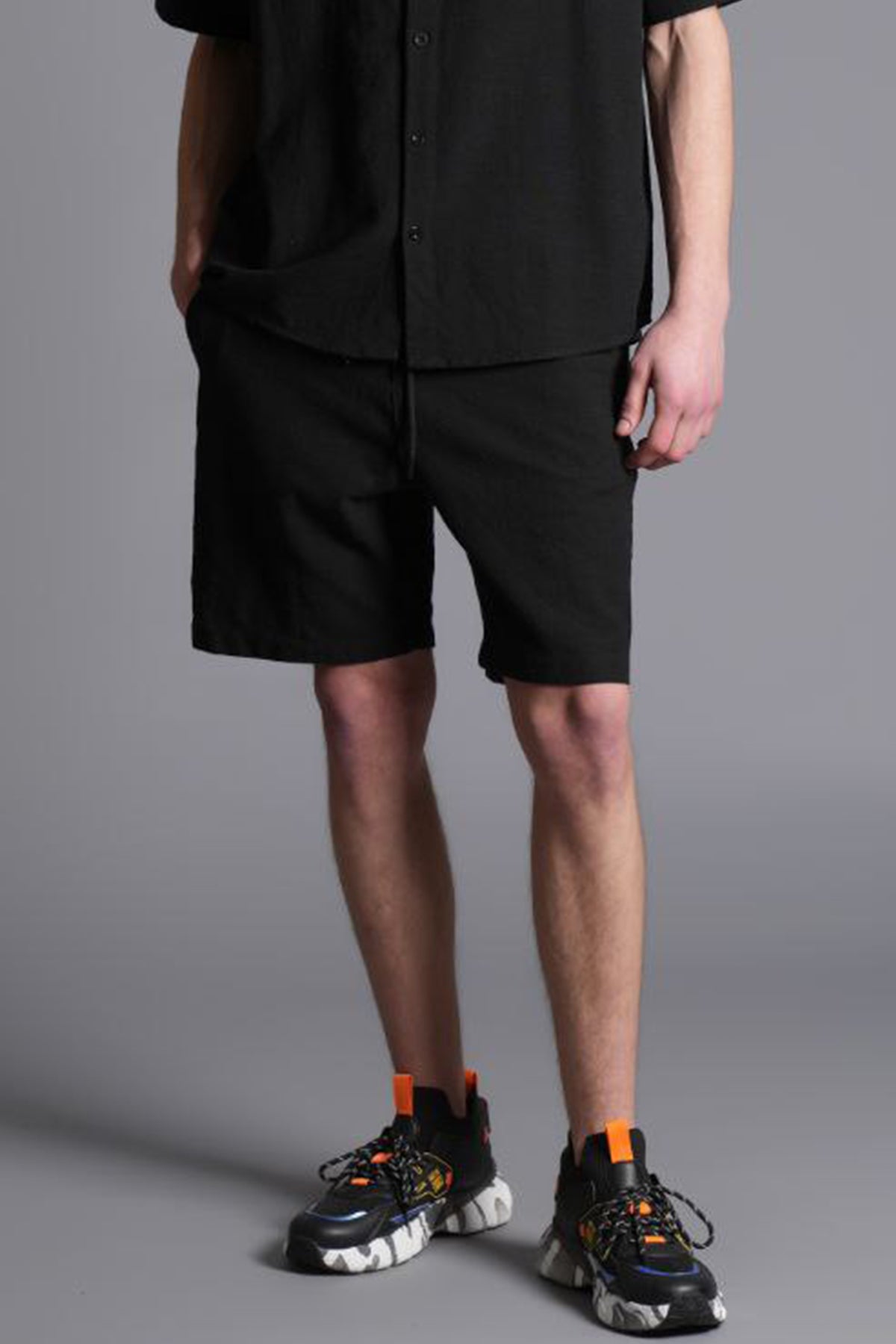 Tombul Flam Basic Şort - Pamuklu Keten Konforu Siyah