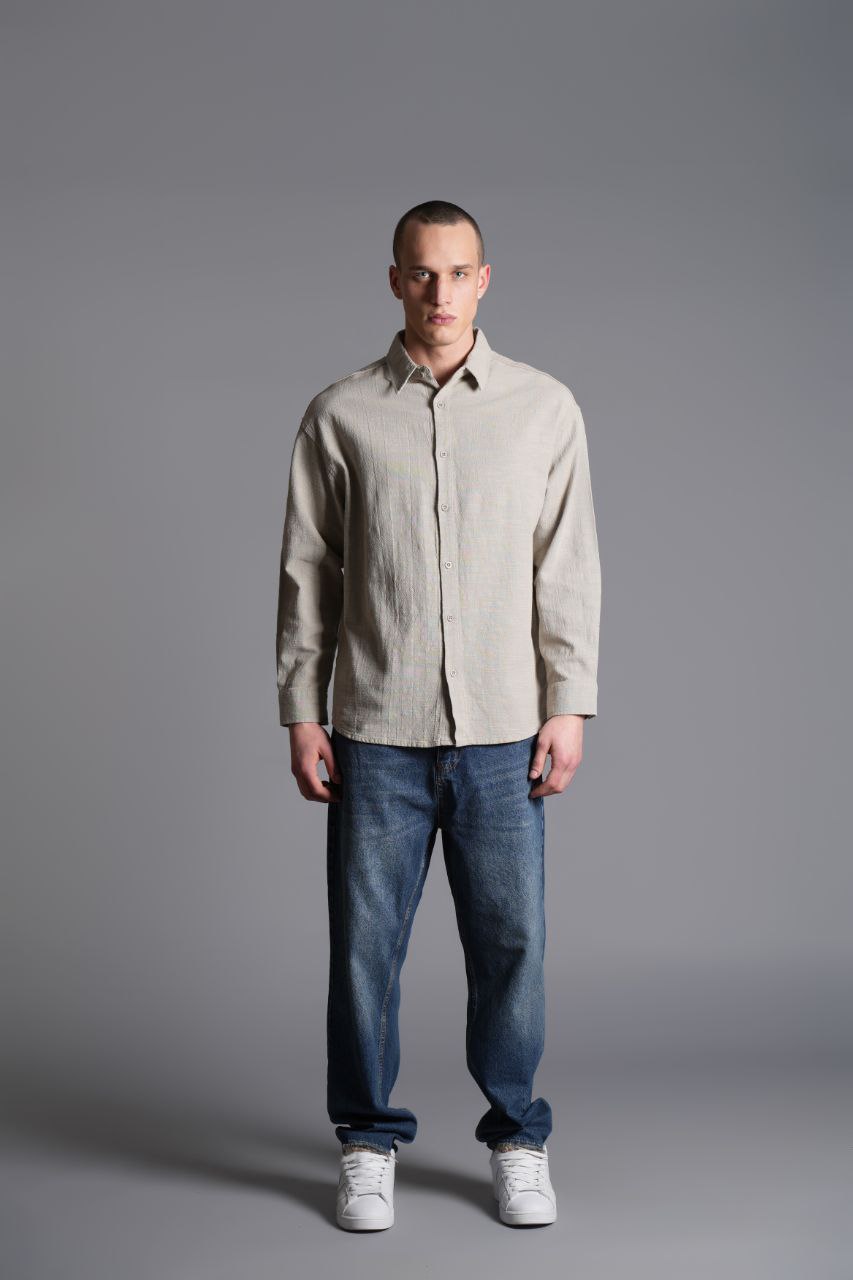 Tombul Flam Uzun Kol Gömlek - Pamuklu Keten Şıklığı ve Rahatlığı Natural