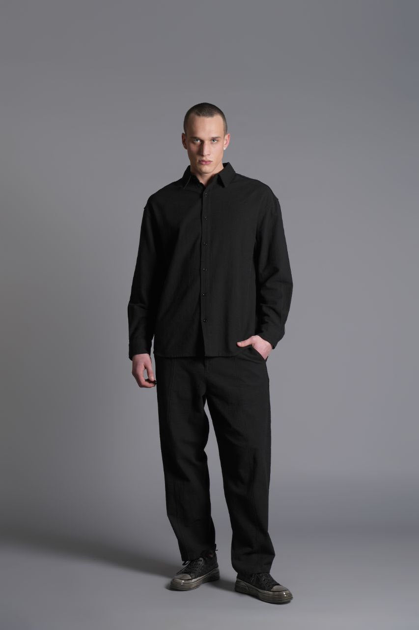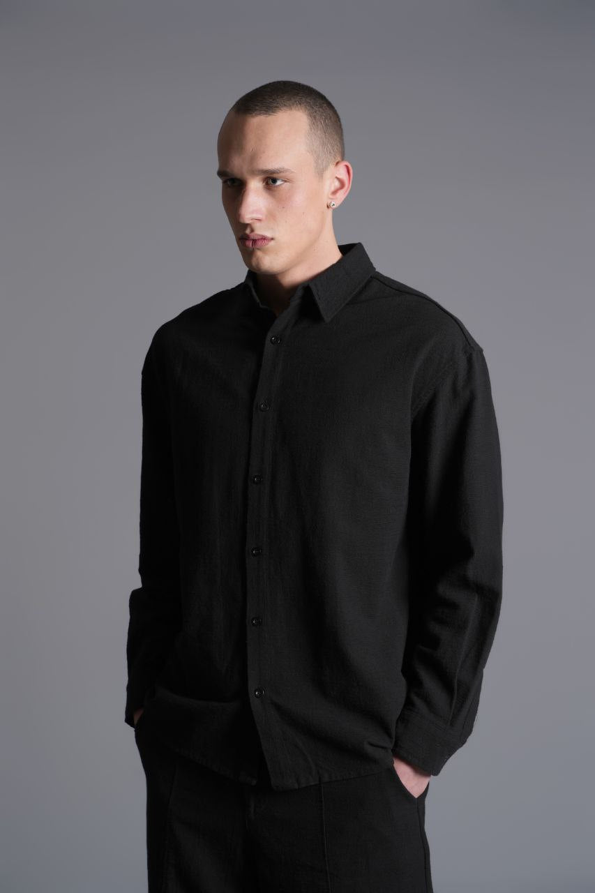 Tombul Flam Uzun Kol Gömlek - Pamuklu Keten Şıklığı ve Rahatlığı Siyah