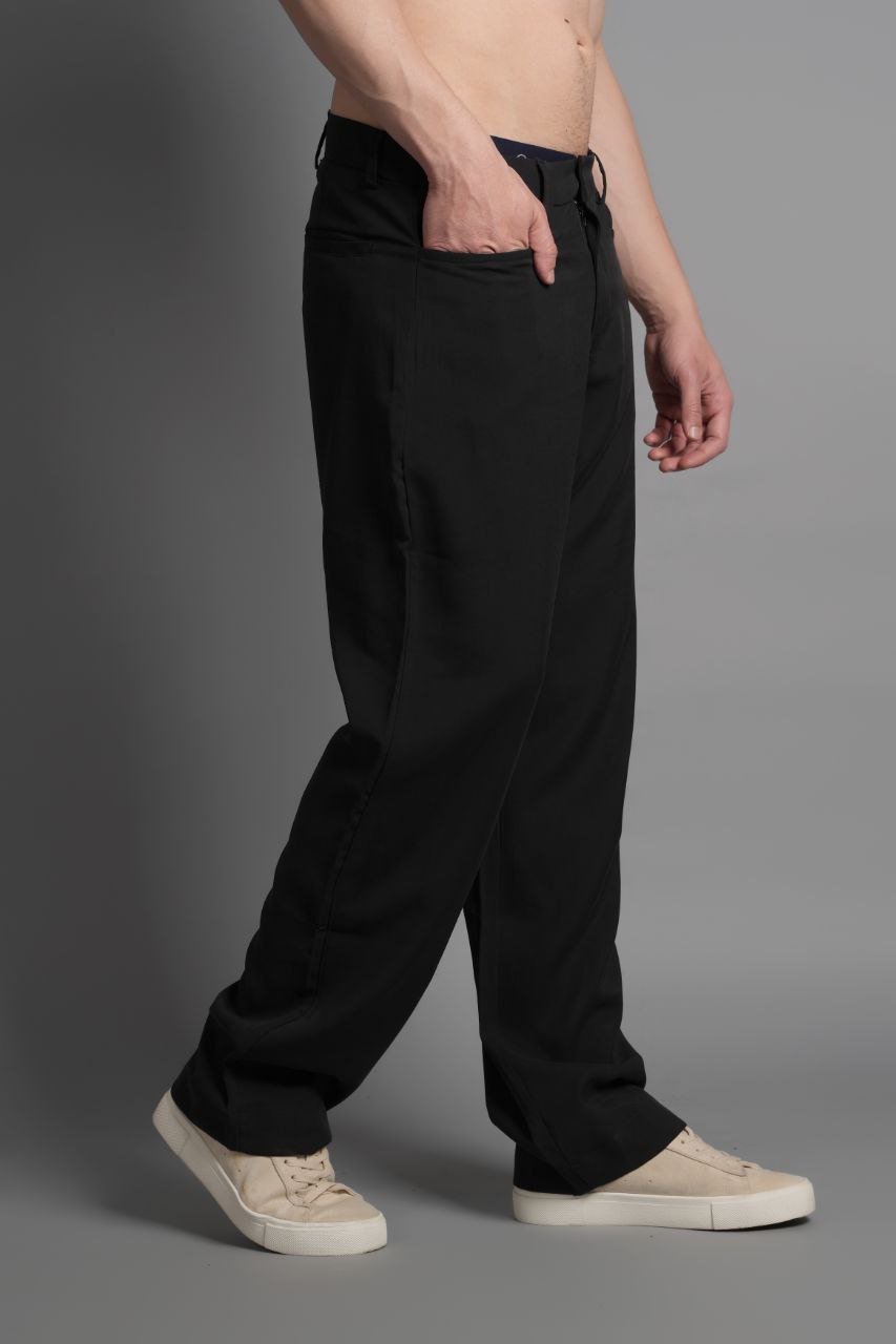 Tensel Kumaş Düz Cep Pantolon Siyah